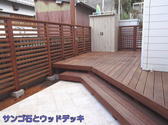 ウッドデッキが部分的に腐って、危険な状況でした。
