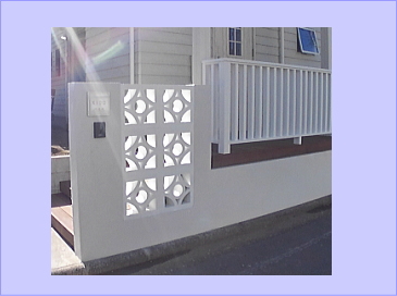 4. 沖縄ハナブロックとアメリカンフェンスの白い外構。